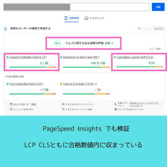 CLSの改善にともないLCPも改善し、ユーザーが見やすいページとすることができました。